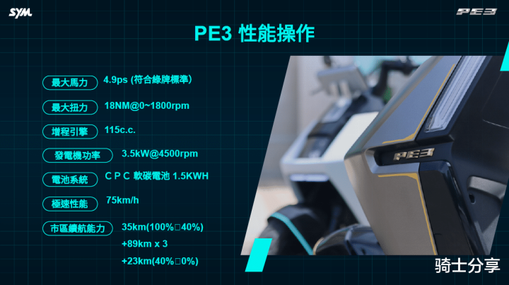 骑士分享从官方获知,SYM三阳机车于10月21日,正式发布了旗下首款增程式电动踏板摩托车——PE3,它的到来意味着电动摩托车终于进入了增程时代,有望解决因电池组容量所带来的续航短板。